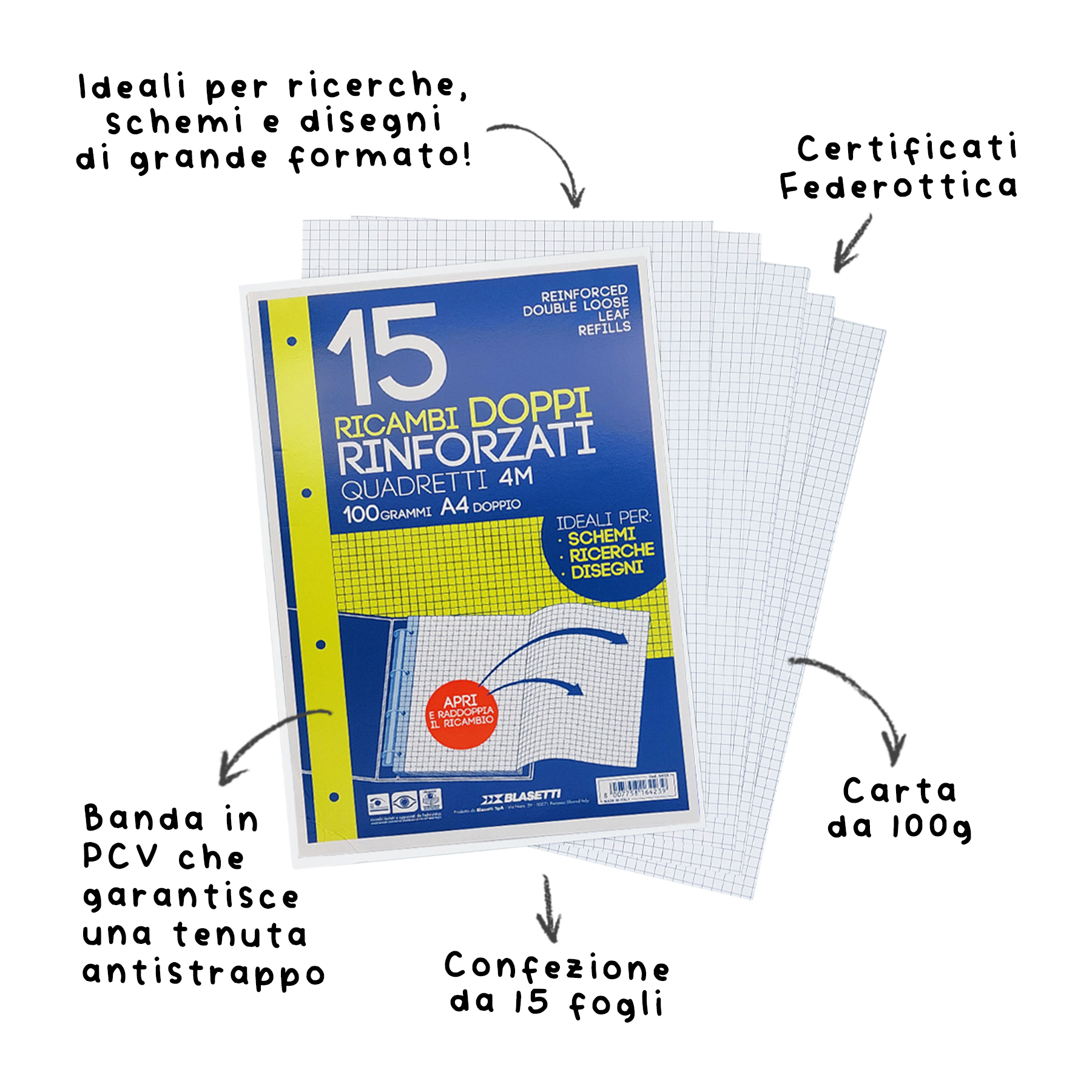 Scopri il RICAMBIO RINFORZATO DOPPIO, ideale per ricerche e disegni di ampie dimensioni. Il formato extra large permette la creazione di mappe concettuali dettagliate.